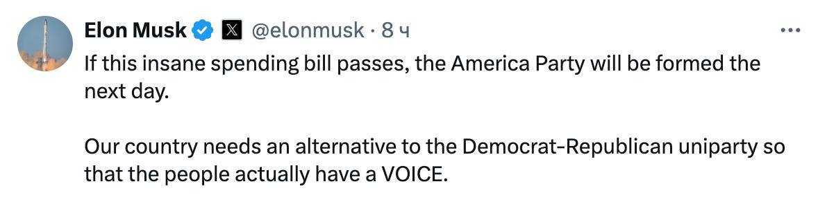 ▪️Все началось с того, что Маск снова раскритиковал законопроект о расходах: