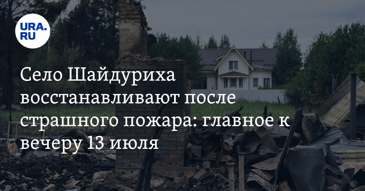 - Пожар в селе Шайдуриха начался вечером 12 июля, он уничтожил 41 строение, из них — 13 жилых домов.