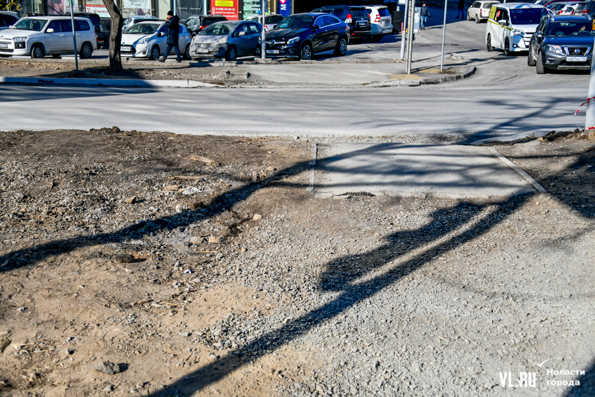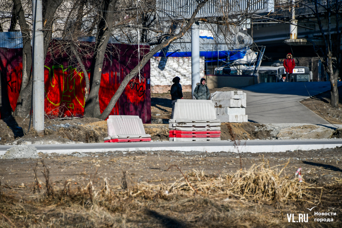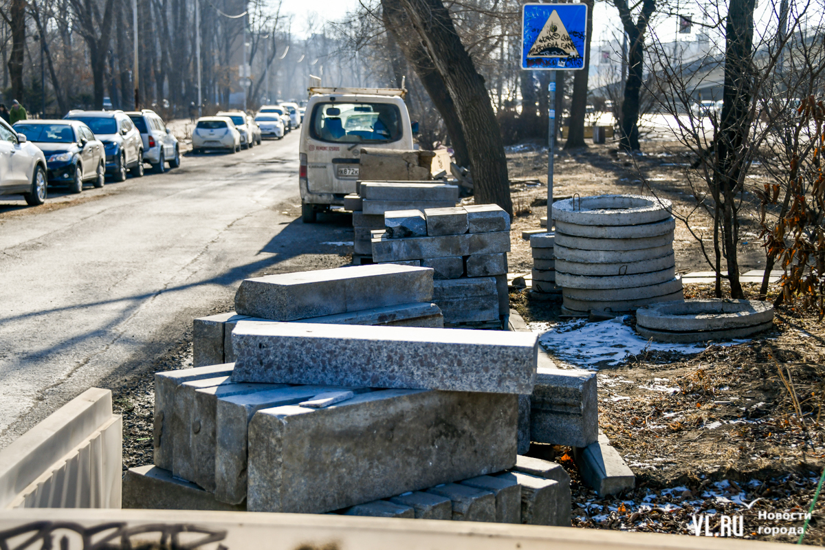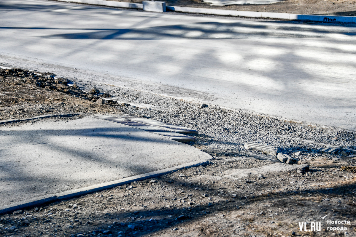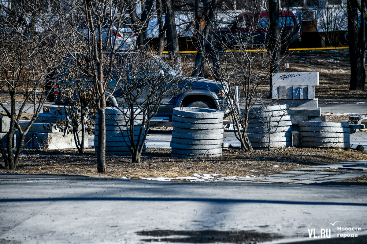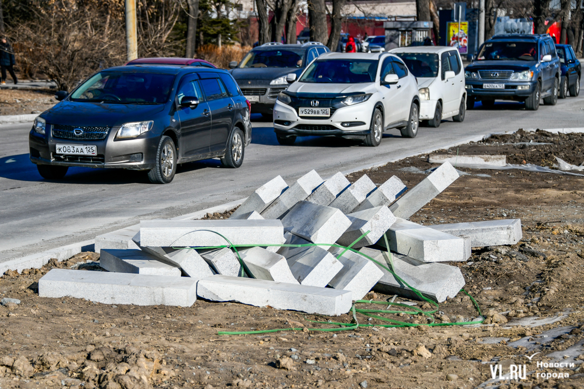 Договор на работы заключили с компанией «РСК», зарегистрированной в Москве. Цена контракта составляла 137,5 млн рублей, сейчас – 144,28 млн рублей. Подрядчику выплатили аванс в размере почти 50% (68,79 млн рублей), что потребовало заключения дополнительного соглашения. Фактически выполнено работ, согласно актам, всего на 22,8 млн рублей. У подрядчика из Москвы было два субподряда из Приморского края, а часть работ в конце прошлого года даже взяло на себя СГТ. Городские службы укладывали бордюры, и это, кажется, единственное, что изменилось там с ноября. Бордюры действительно уложены, хотя не все и не везде.