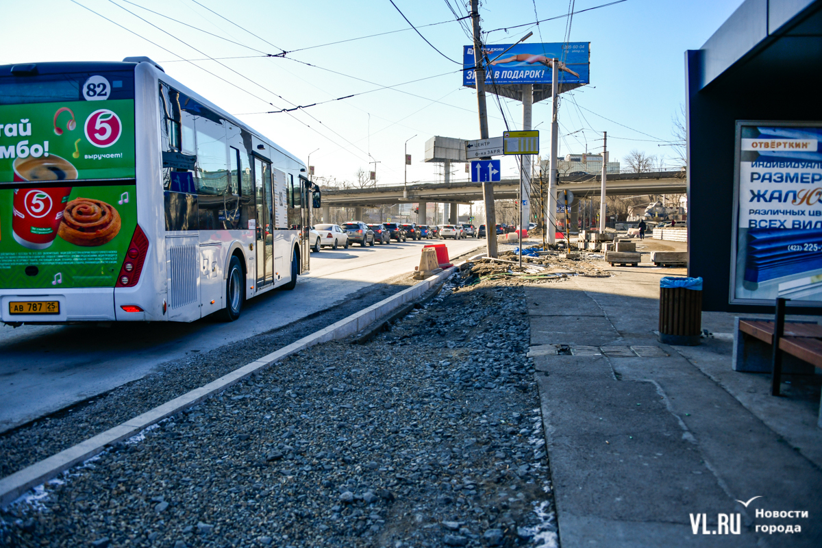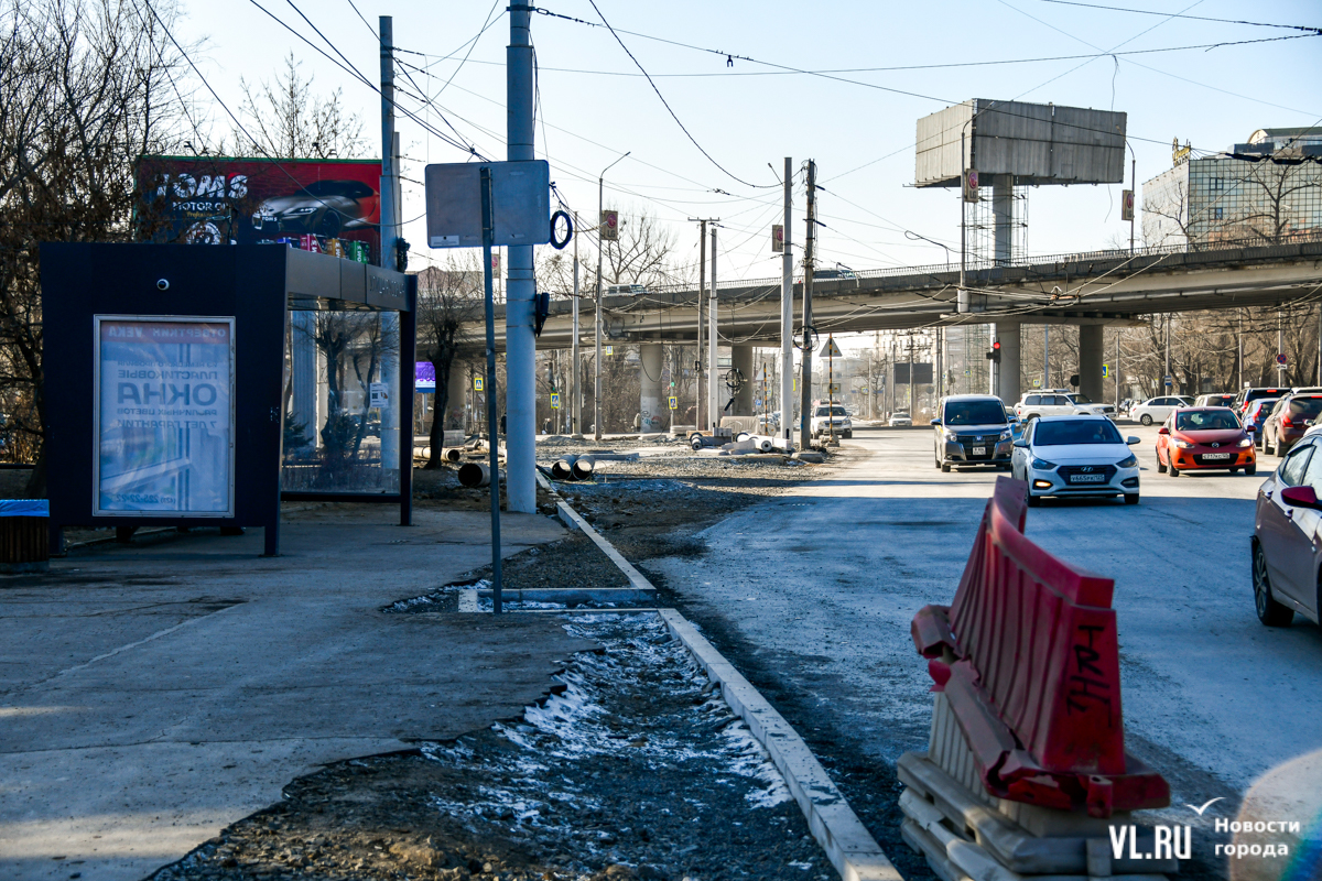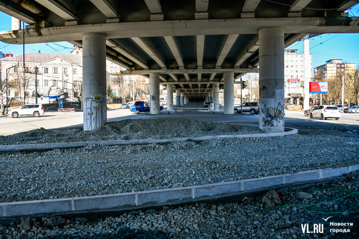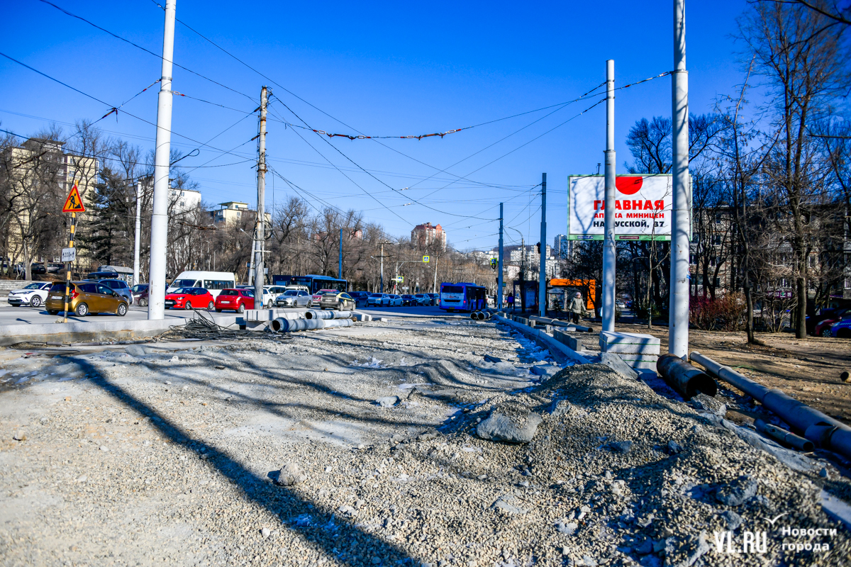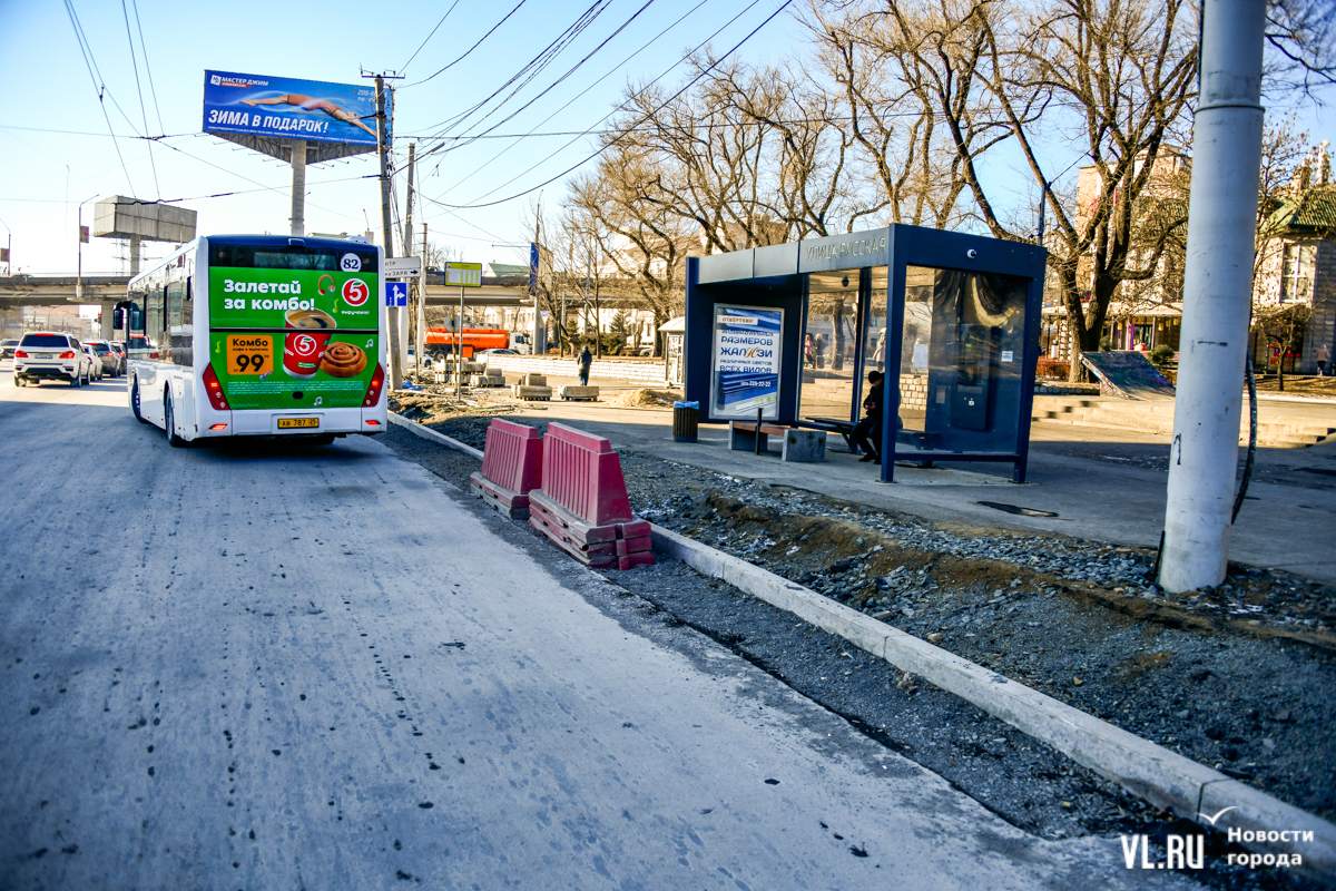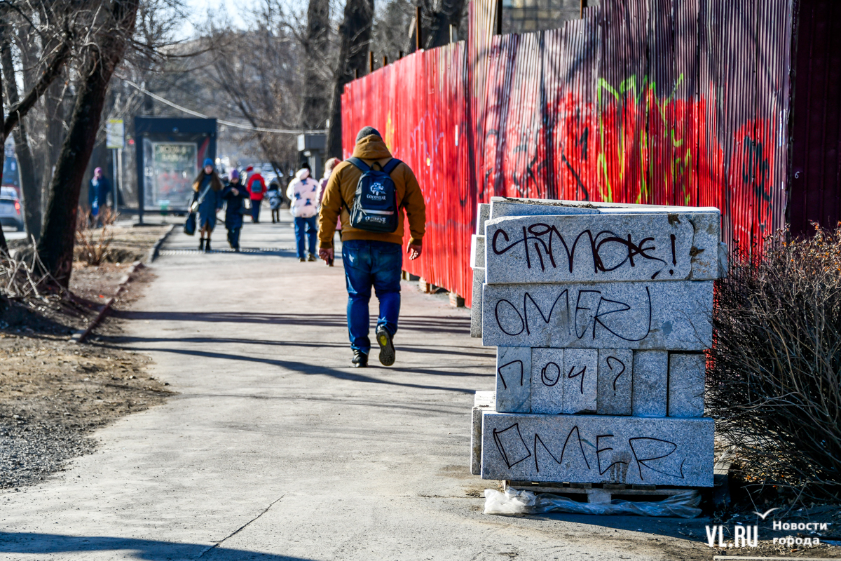 Договор на работы заключили с компанией «РСК», зарегистрированной в Москве. Цена контракта составляла 137,5 млн рублей, сейчас – 144,28 млн рублей. Подрядчику выплатили аванс в размере почти 50% (68,79 млн рублей), что потребовало заключения дополнительного соглашения. Фактически выполнено работ, согласно актам, всего на 22,8 млн рублей. У подрядчика из Москвы было два субподряда из Приморского края, а часть работ в конце прошлого года даже взяло на себя СГТ. Городские службы укладывали бордюры, и это, кажется, единственное, что изменилось там с ноября. Бордюры действительно уложены, хотя не все и не везде.