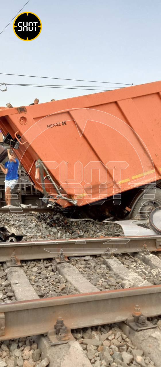 Водитель КАМАЗа, который столкнулся с поездом в Волгоградской области, госпитализирован. По данным SHOT, он в тяжёлом состоянии, за его жизнь борются врачи. У КАМАЗа оторвана кабина.