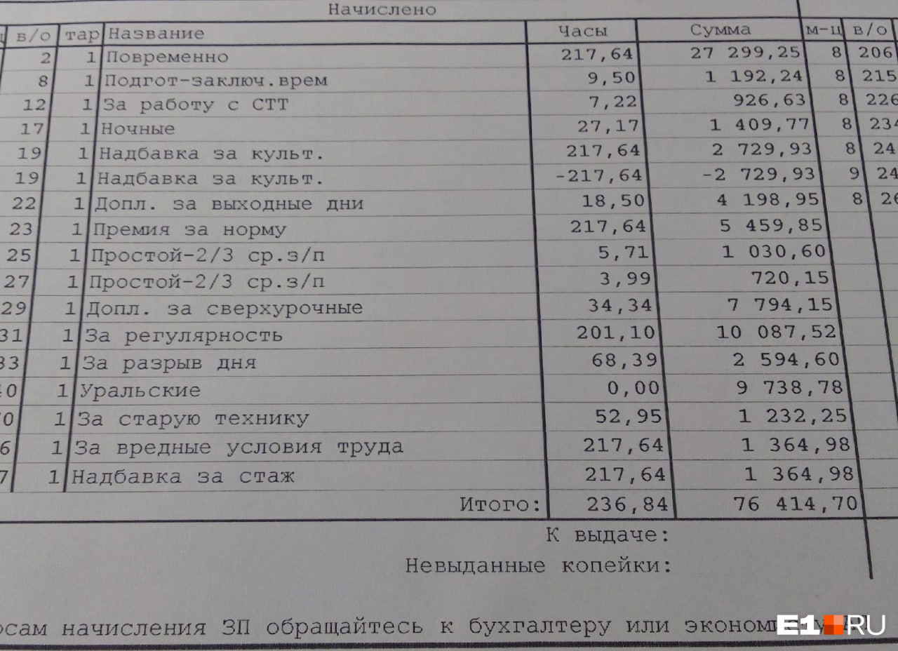 Недавно екатеринбургский водитель автобуса показал свою расчетку. За 217 часов работы он получил