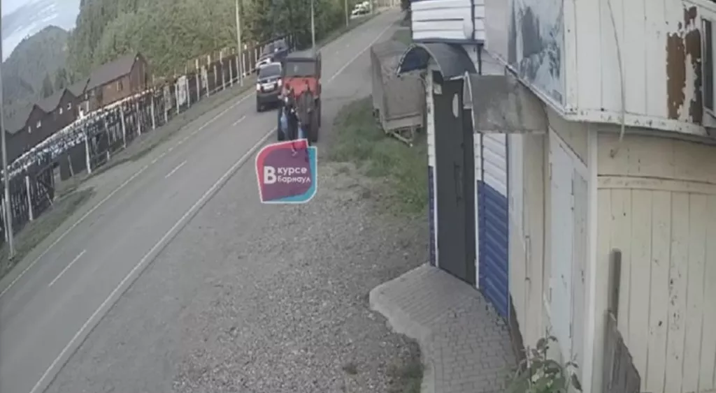 В алтайском селе Ая водитель автомобиля сбил двух пешеходов. Кадры с моментом ДТП появились в сообществе "В курсе 22 Барнаул".