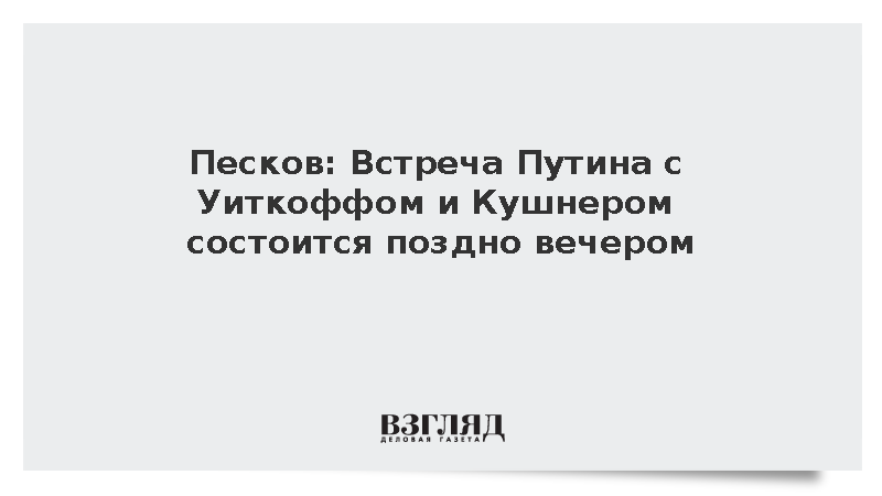 Песков: Встреча Путина с Уиткоффом и Кушнером состоится поздно вечером