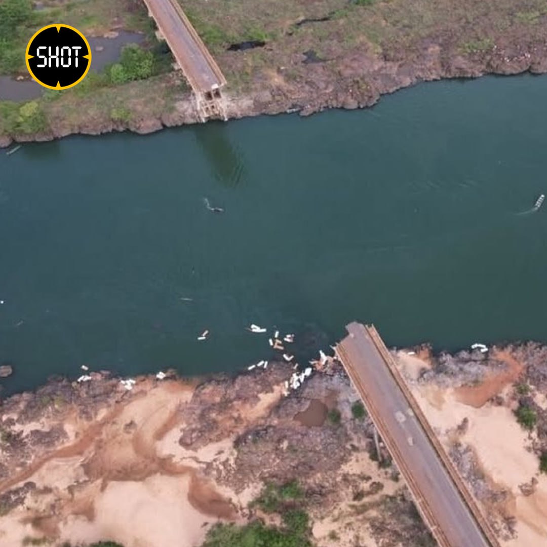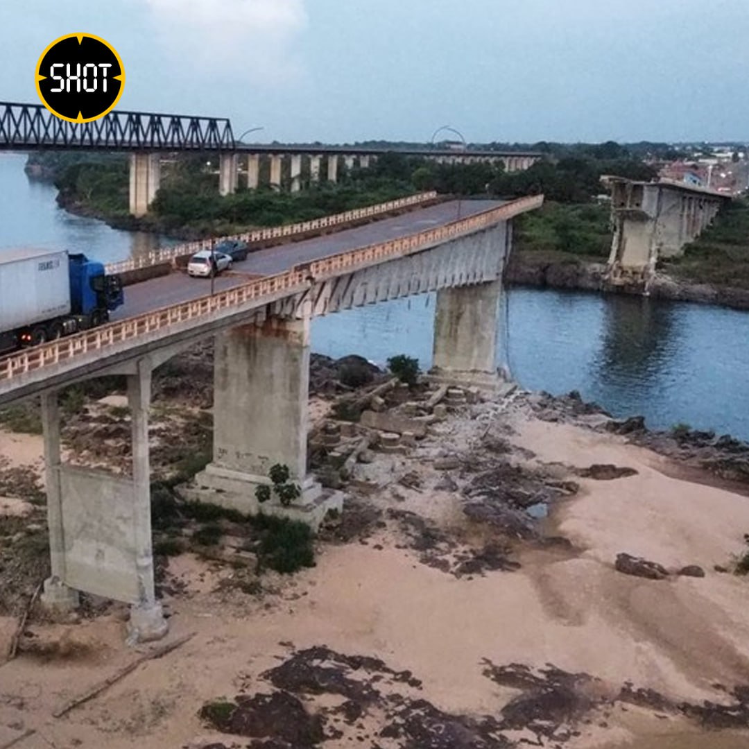 Два грузовика с серной кислотой рухнули в реку во время обрушения моста в Бразилии. Предварительно, два человека погибли, 10 числятся пропавшими без вести и ещё 10 ранены.