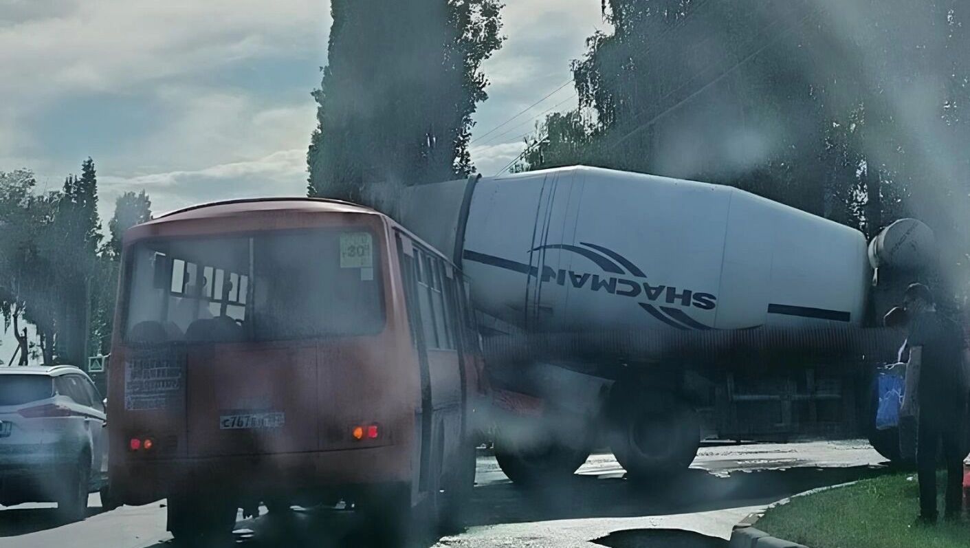 Маршрутка столкнулась с бетономешалкой на Ореховской улице в Нижнем Новгороде. Фото: t.me/crime_52