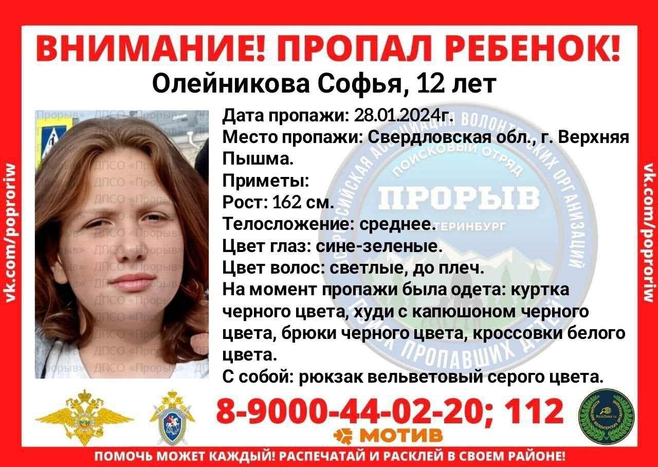 Ее ищут полиция и волонтеры отряда «Прорыв». Если вы видели Софью, то позвоните руководителю отряда Наталии
