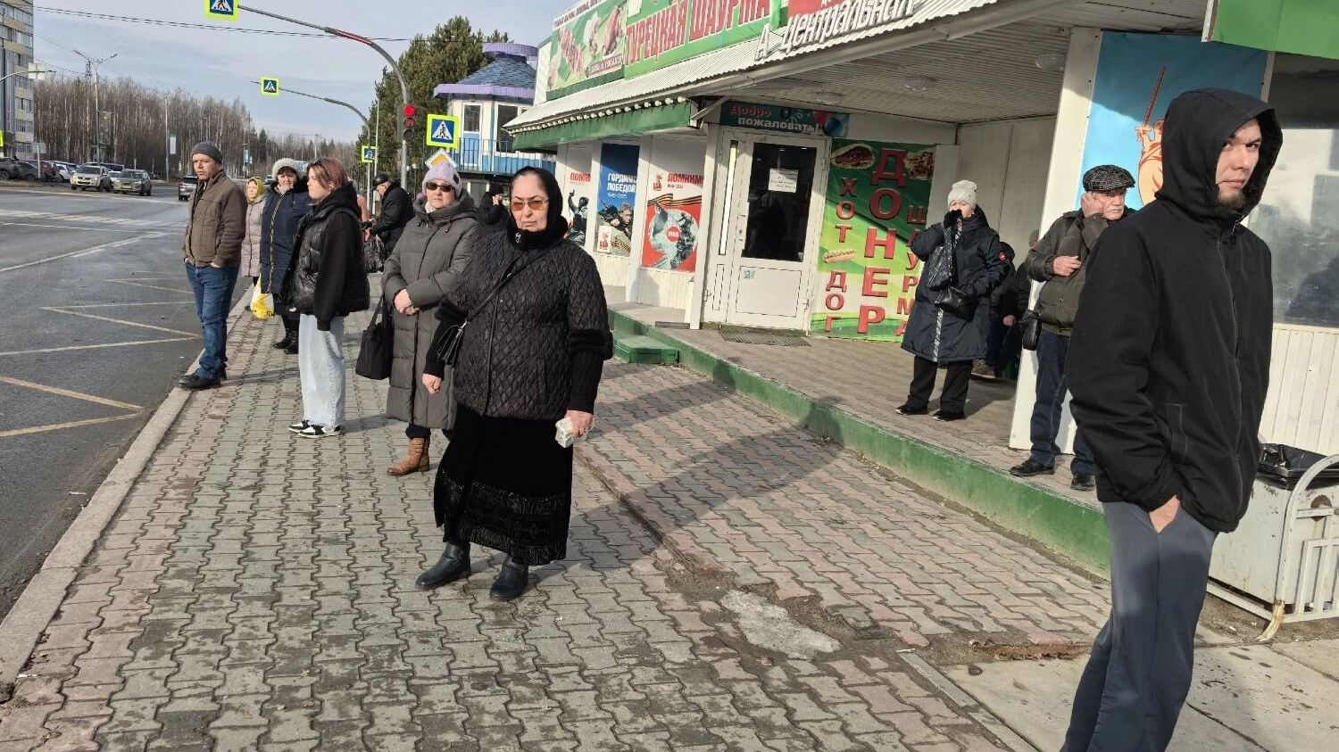Такое количество человек в Пыть-Яхе в будний день не в час пик — уже толпа. Многие стоят за кадром, корреспондент насчитал около 30 человек, которые примерно полчаса ждали разные автобусы. Автобус №4 опоздал на 15 минут.