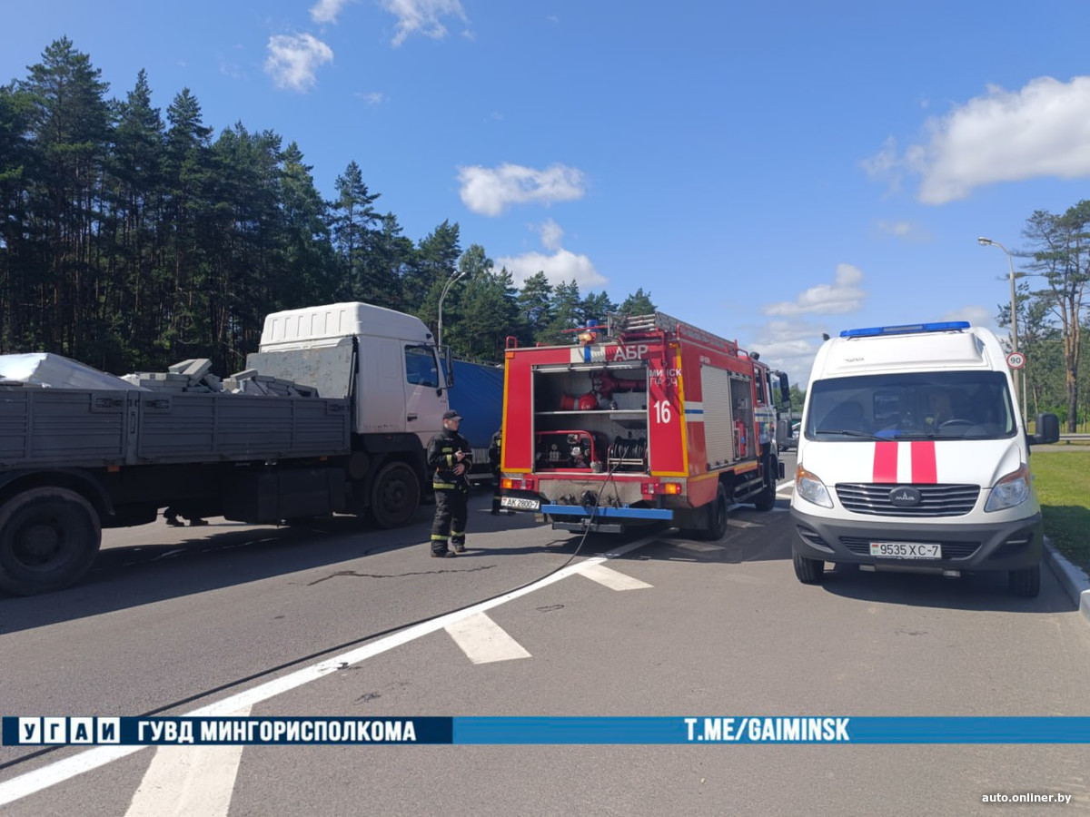 По сообщению столичной Госавтоинспекции, по предварительной информации, столкновение трех грузовых автомобилей — одного Mercedes и двух МАЗ — произошло в результате несоблюдения безопасной дистанции.