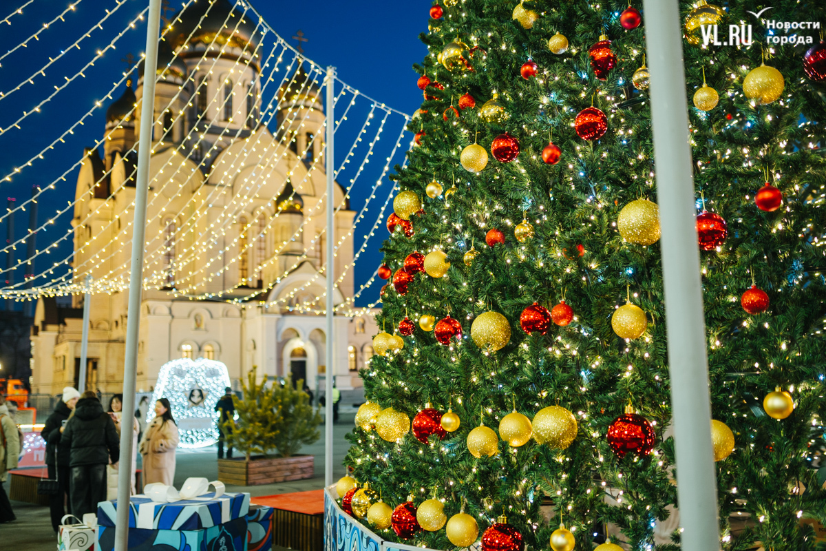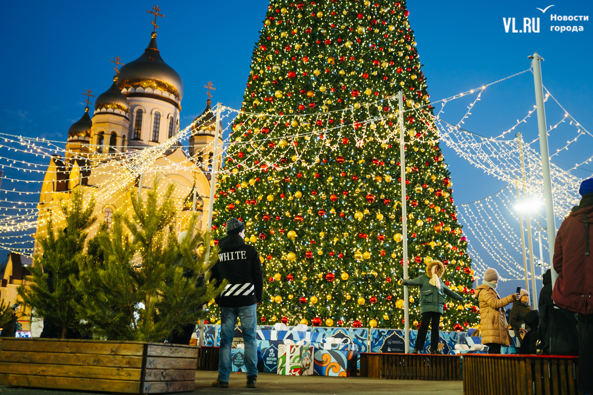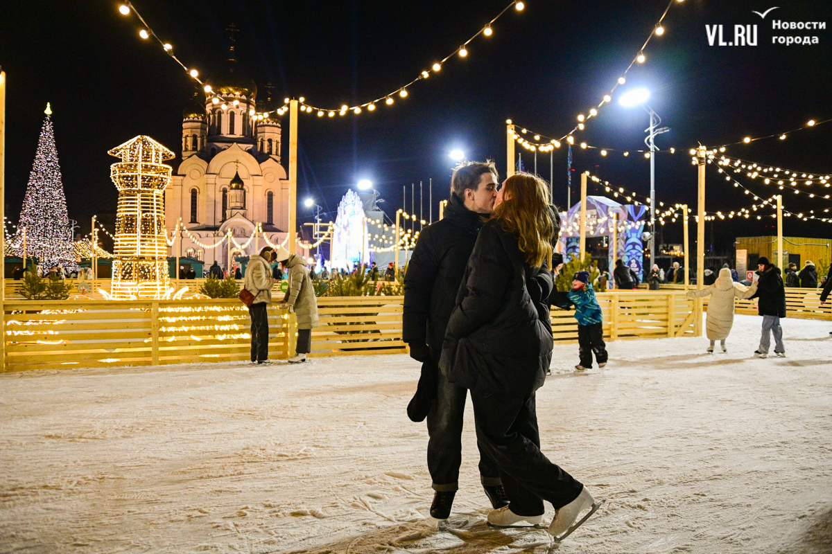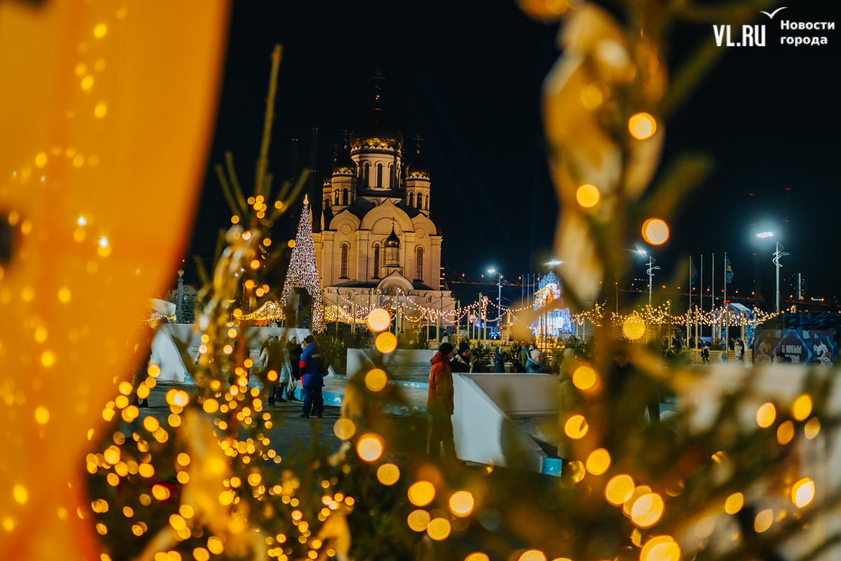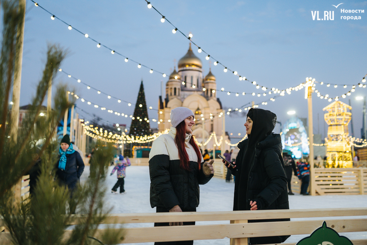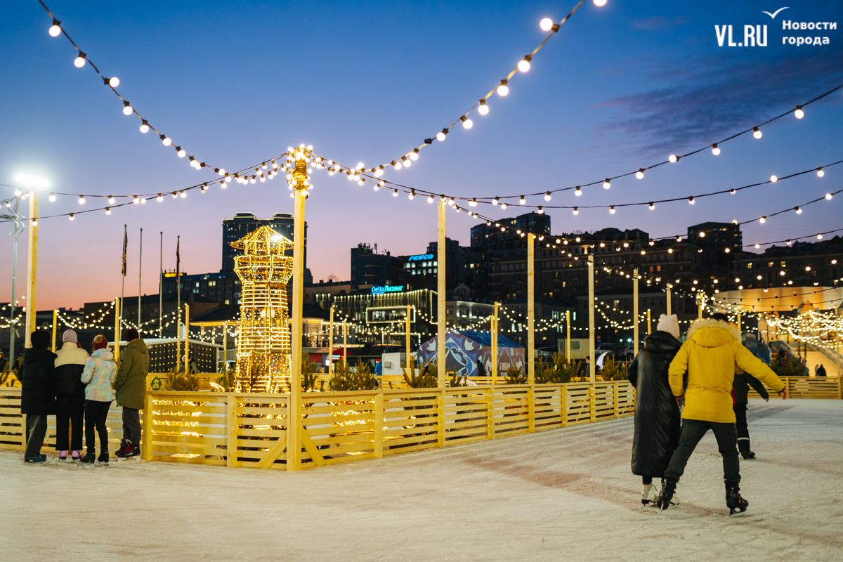Меньше чем за неделю до Нового года, посреди рабочей недели, на центральной площади Владивостока открылся новогодний городок с катком и горками и прошёл концерт для горожан. Получился небольшой праздник, который скрасила необычно тёплая погода. Зажглись огни на ёлке, по площади ходили аниматоры, со сцены артисты пели новогодние песни. В финале праздничного открытия выступила группа «Интонация».