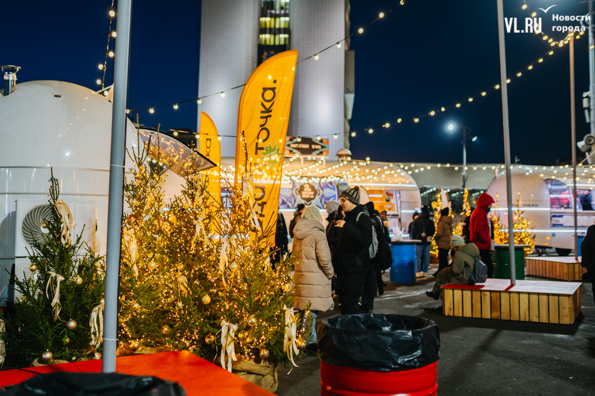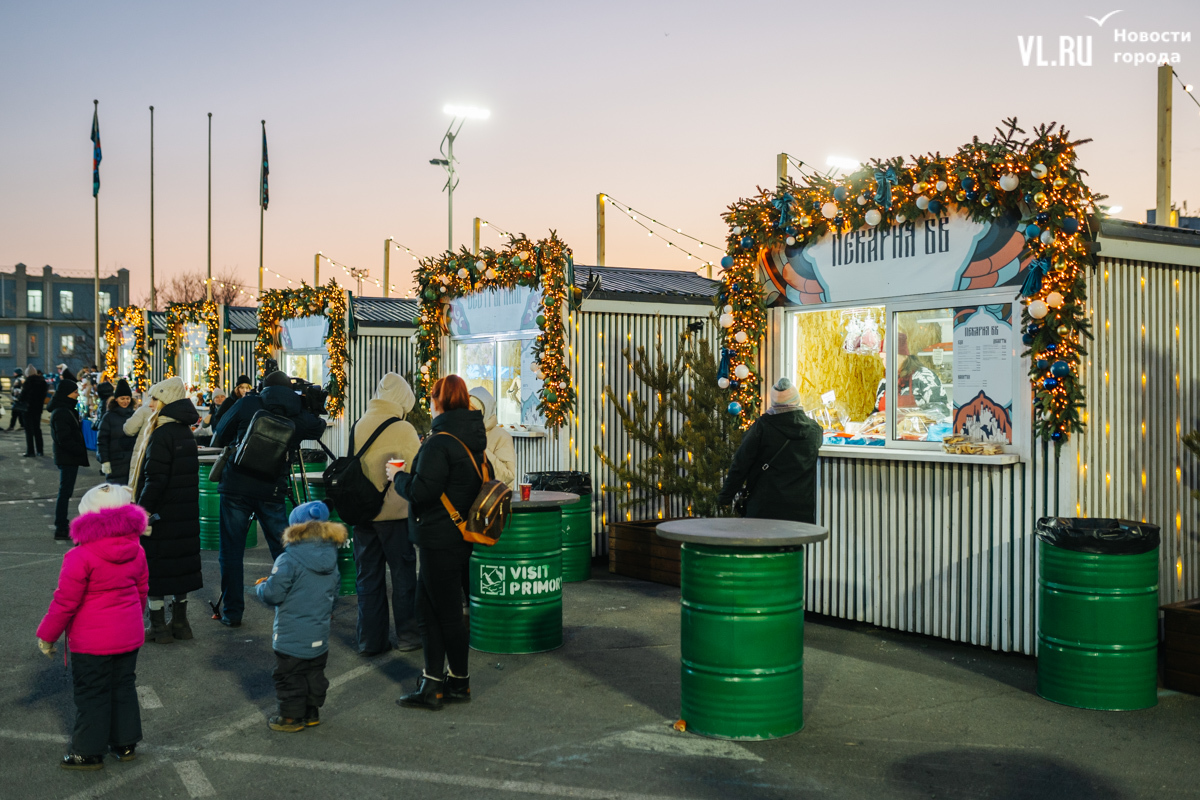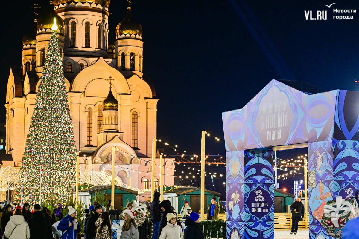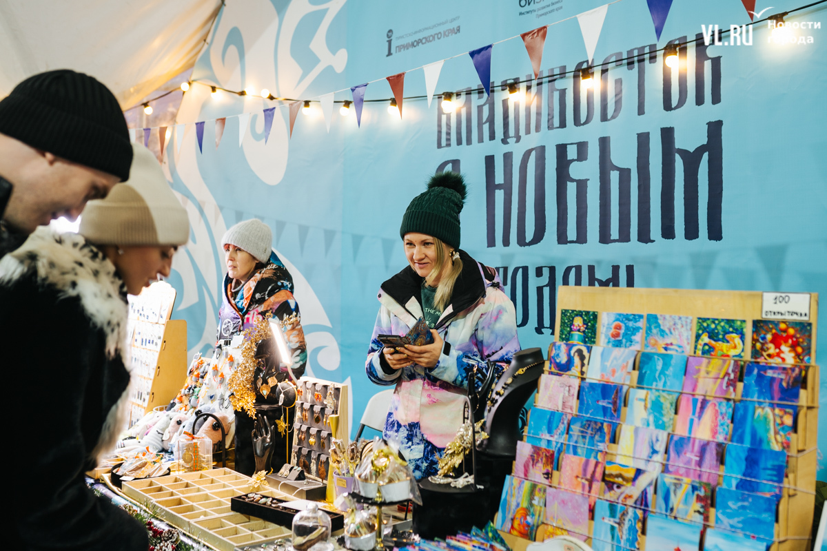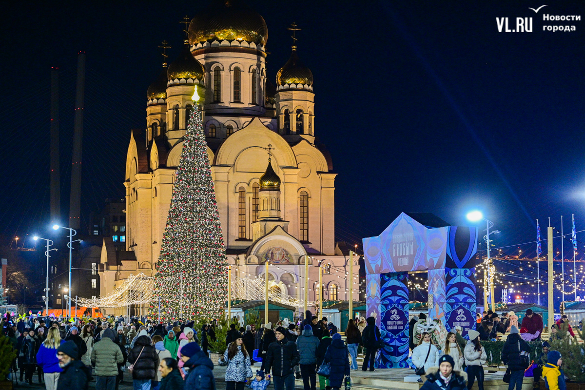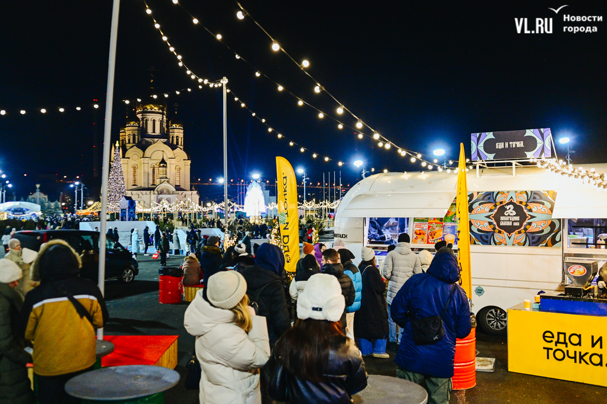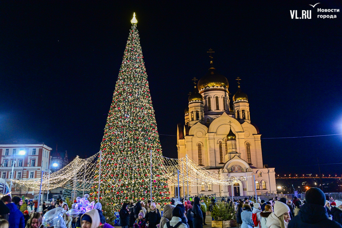 Меньше чем за неделю до Нового года, посреди рабочей недели, на центральной площади Владивостока открылся новогодний городок с катком и горками и прошёл концерт для горожан. Получился небольшой праздник, который скрасила необычно тёплая погода. Зажглись огни на ёлке, по площади ходили аниматоры, со сцены артисты пели новогодние песни. В финале праздничного открытия выступила группа «Интонация».