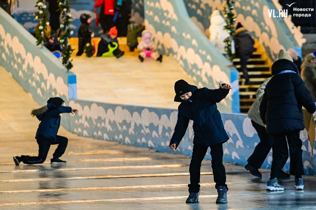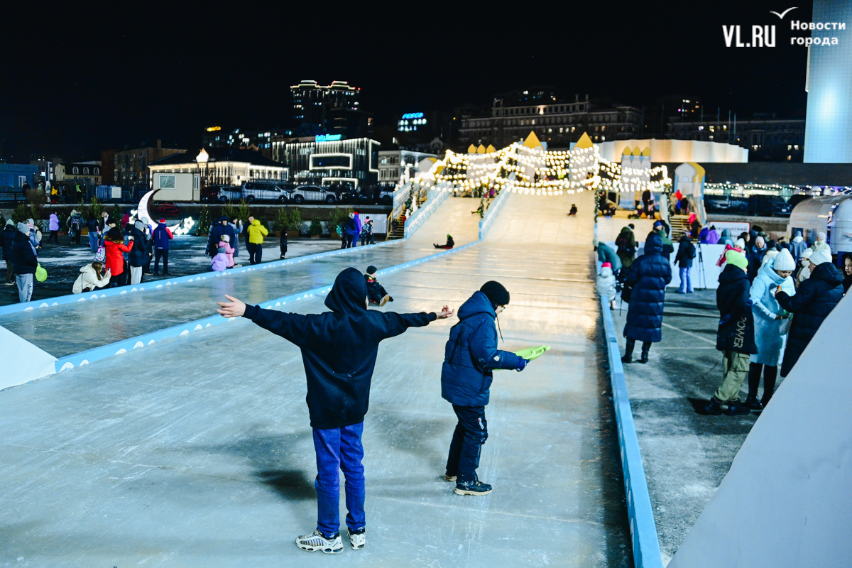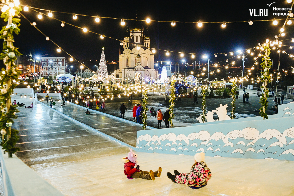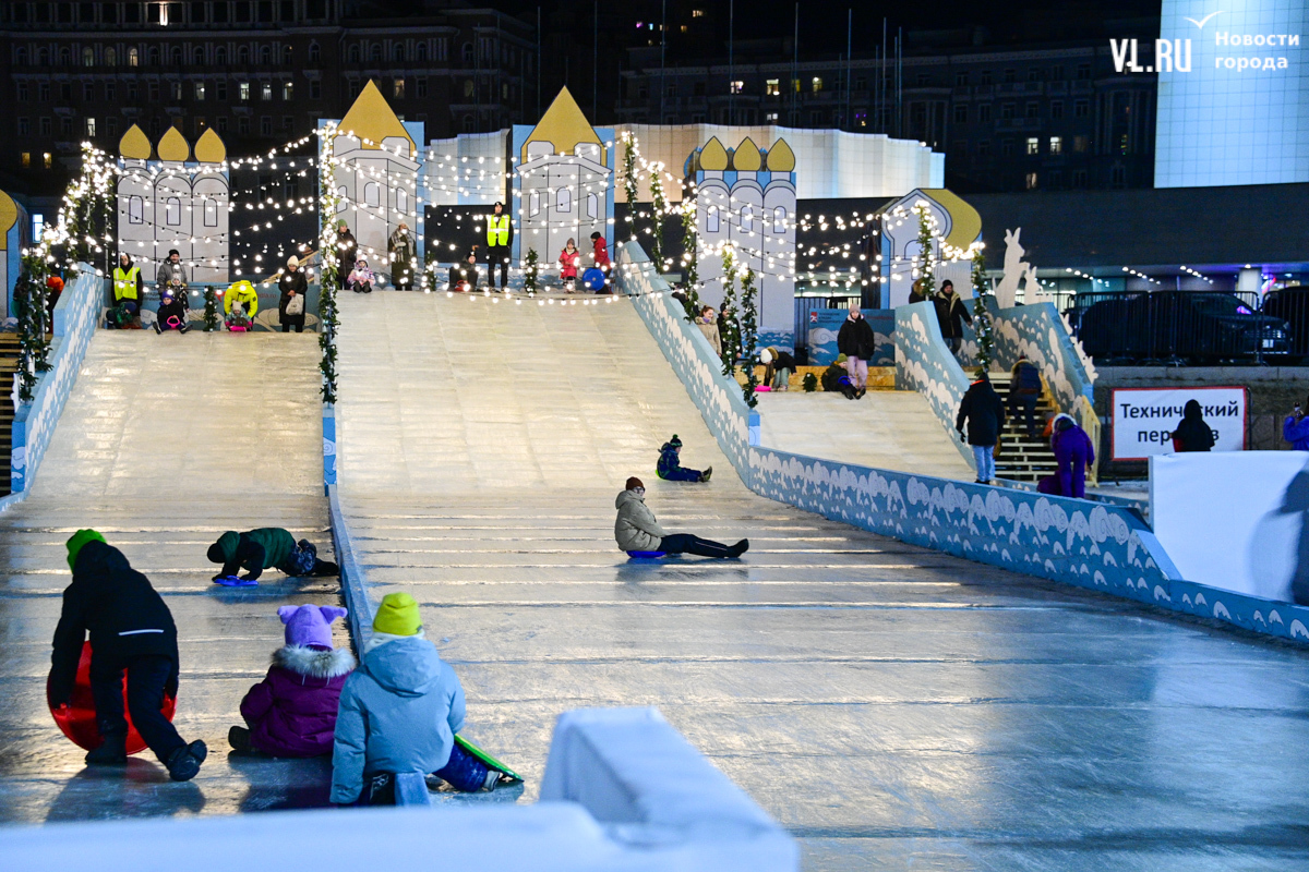 Теперь горка и каток на площади будут работать ежедневно, с техническими перерывами. Сегодня в 12:00 должно состояться техническое открытие новогоднего городка в парке Лазо, там тоже залили каток и горку, в этом году они будут тут бесплатными, как и прокат. А в пятницу в 17:00 планируется открытие самого большого городского катка – на стадионе «Авангард».