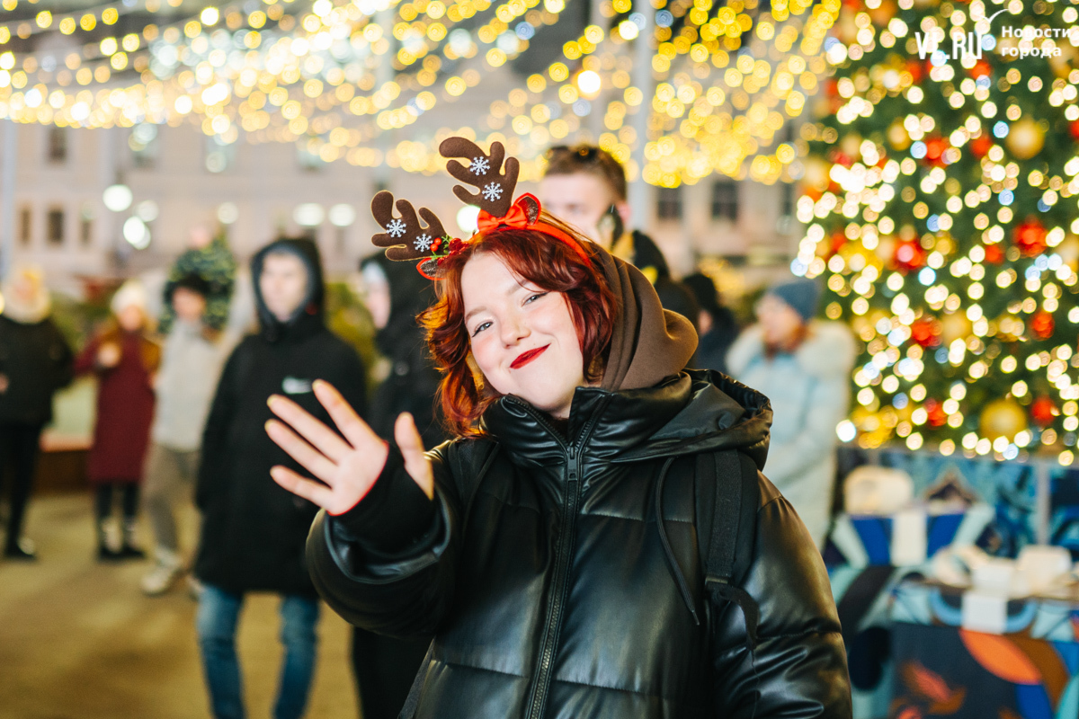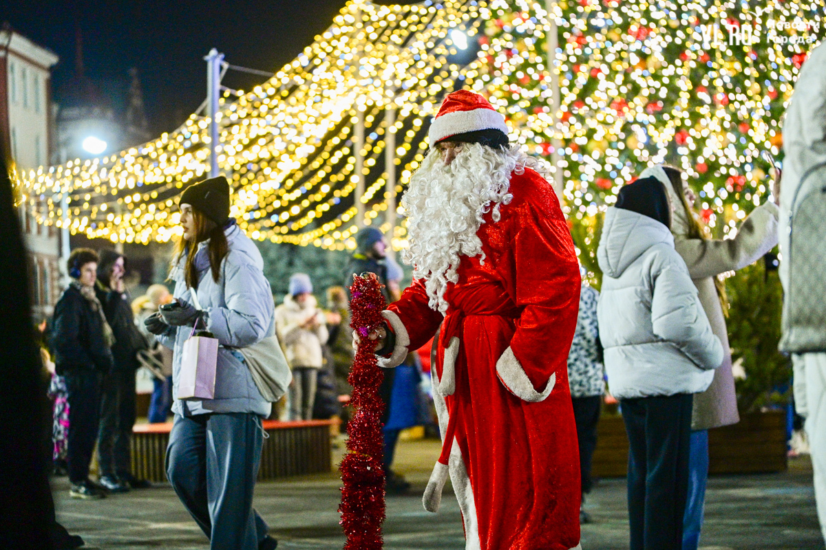 Главной фотозоной площади стала ёлка. В шарах и гирляндах, она привлекала к себе постоянный поток горожан. Фотографировались и рядом с ней, и на её фоне поодиночке, парами, группами друзей и семьями.