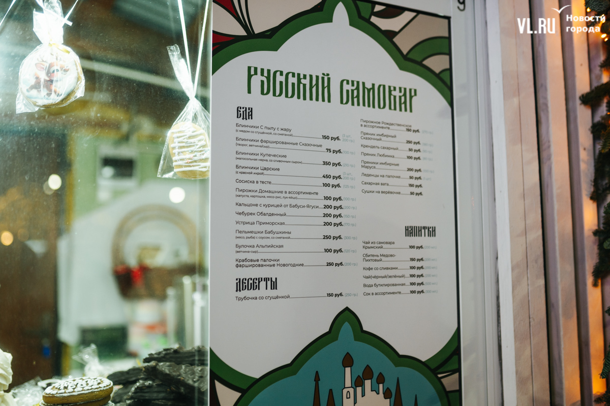 В другой части площади, рядом с ёлкой, организовали ещё один сектор с едой, но с другим настроением: продавали здесь булочки, пирожки, трубочки со сгущёнкой, чай и кофе. Постоянная очередь стояла в киоск с чаем и сбитнем из самовара. В этом же ряду работали киоски с сувенирами и мягкими игрушками, но популярностью они не пользовались.