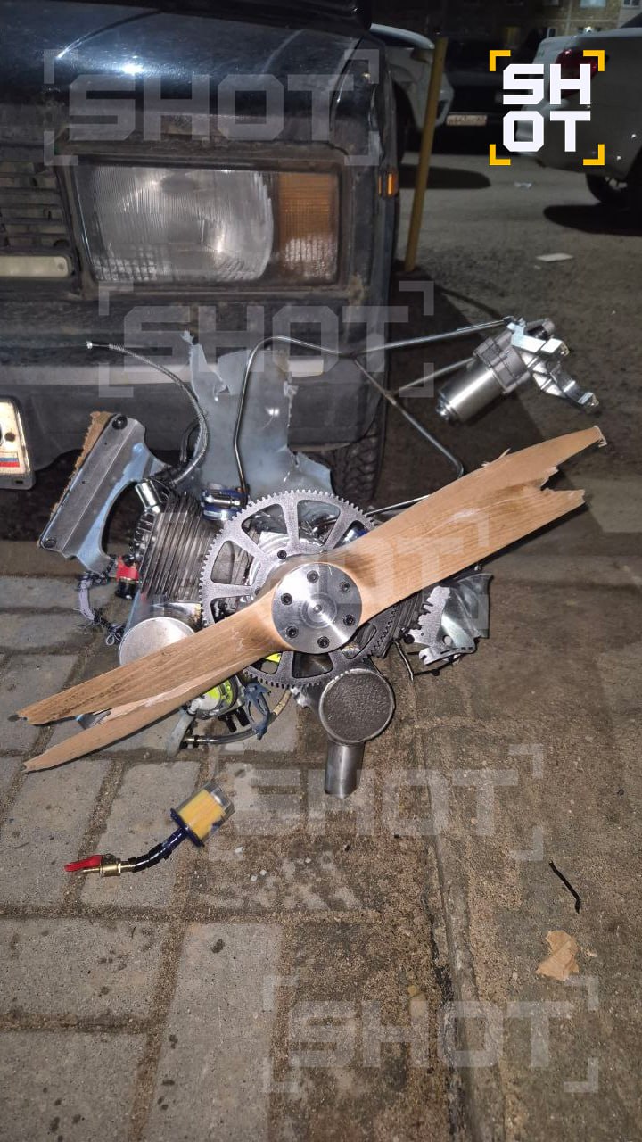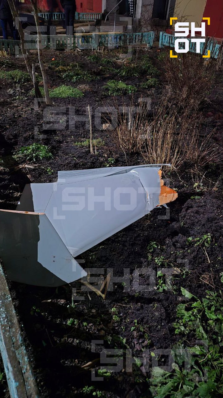 Местные жители рассказали SHOT, что обломки дронов PD-2 и "Лютый" разбросаны по всей округе. Крыло БПЛА рухнуло на газон перед домом, а двигатель приземлился рядом с машиной. По их словам, боевая часть БПЛА не сдетонировала. Предварительно, пострадавших нет.