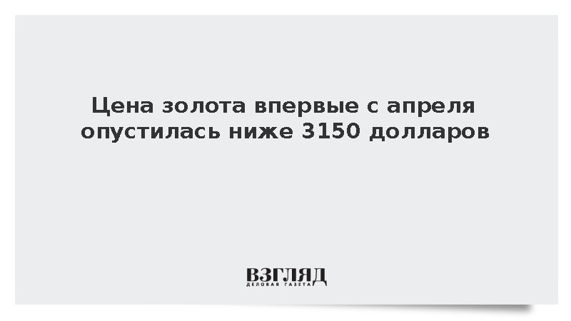 Цена золота на бирже снизилась до минимального уровня с апреля, достигнув отметки 3149 долларов за тройскую унцию.