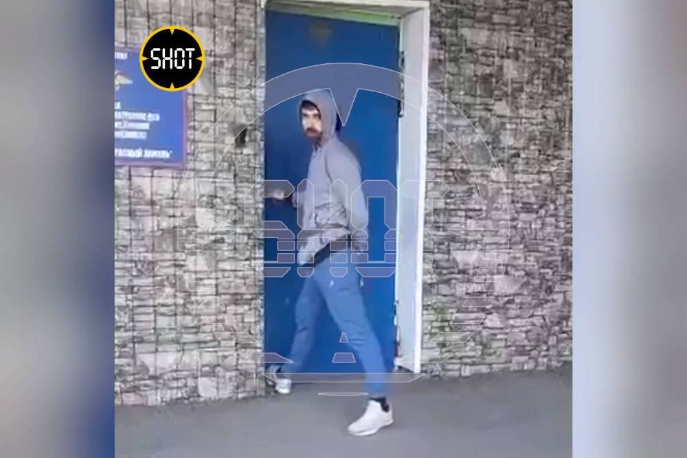 Мужчина с ножами пытался прорваться в ОМВД города Киселёвска Кемеровской области. Видео © Telegram / SHOT