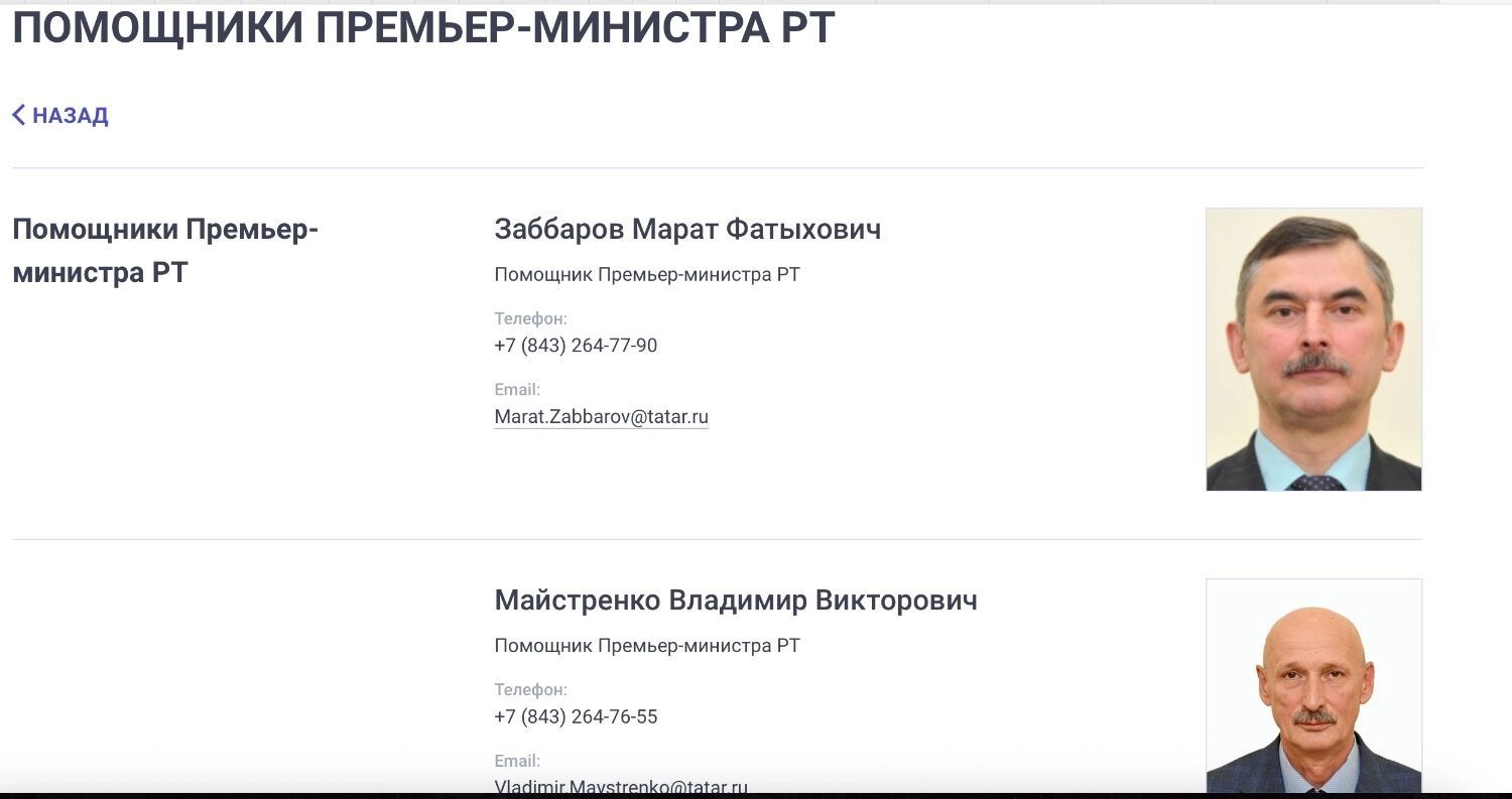 Помимо Латыпова, помощников у премьер-министра Татарстана Алексея Песошина пять. Среди них Марат Заббаров, но не из минсельхоза РТ, Владимир Майстренко, Булат Юнусов, Назиль Насибуллин и Эльдар Адеев.