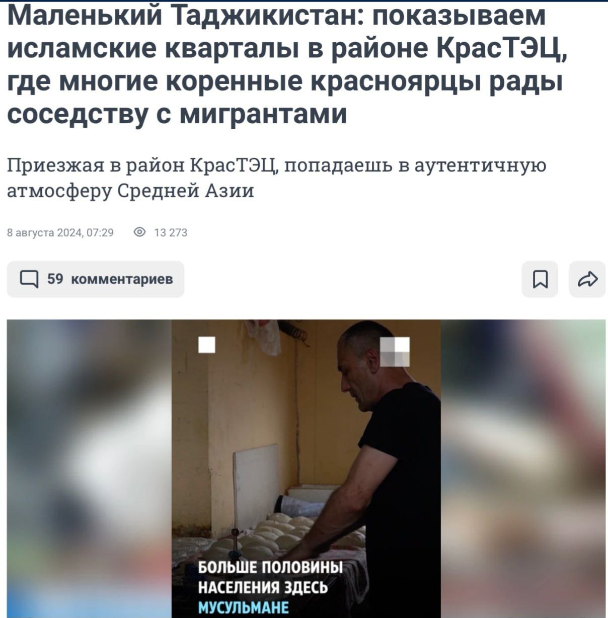 Особенно "порадовал" пассаж про коренных красноярцев, которые "рады соседству с мигрантами". Тупорылый журналист не озадачился вопросом - у кого же тогда покупают квартиры мигранты? А они покупают их у как раз у "радостных" коренных красноярцев - которые переезжают из этого района. В итоге плюс еще один этнический анклав.