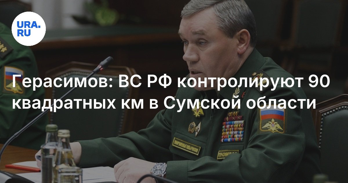 Российские войска контролируют более 90 квадратных километров в Сумской области Украины. Такие данные привел начальник Генштаба ВС РФ Валерий Герасимов в ходе доклада президенту России Владимиру Путину.