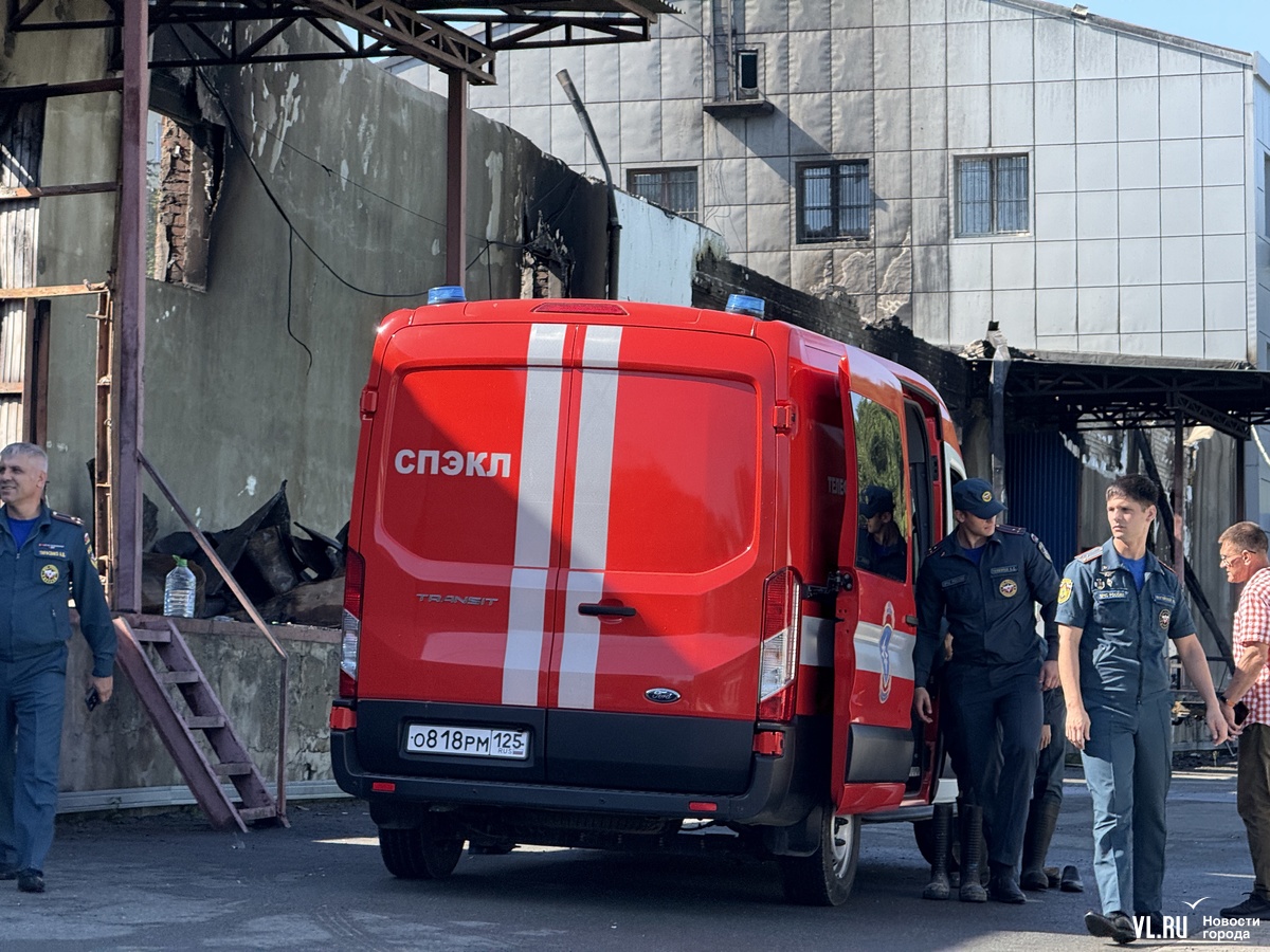 Параллельно с пожарными на месте работают и сотрудники экспертно-криминалистической лаборатории МЧС. Надев сапоги, они осмотрели территорию и вошли внутрь бывших складов.