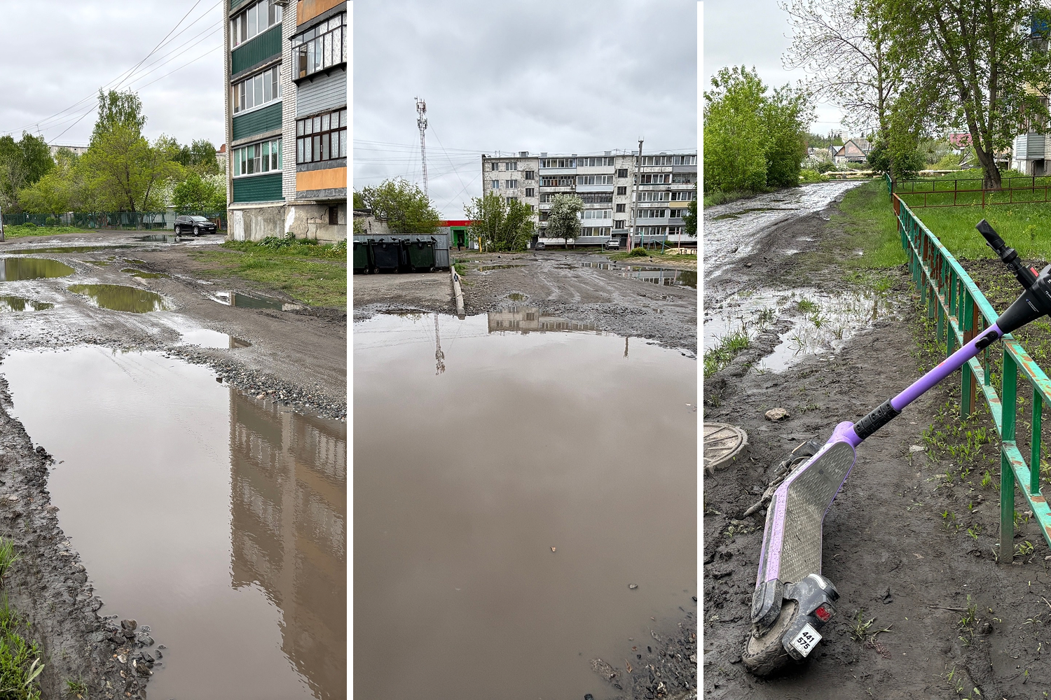 — Посмотрите, какое болото собирается после дождя возле ларька! Ливнёвку нужно было сделать, чтобы вода уходила в болото! — высказывает схожую мысль ещё один местный житель, катающийся на велосипеде.