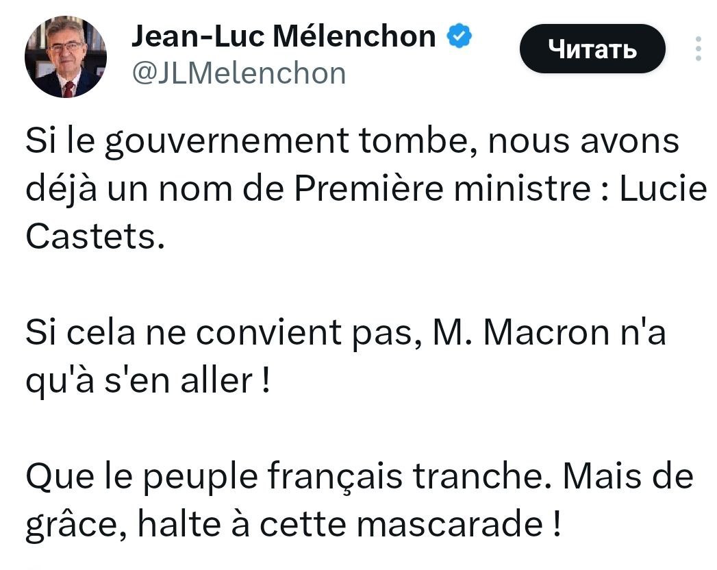 ❗️ Лидер левой оппозиции Франции Меланшон пригрозил Макрону отставкой