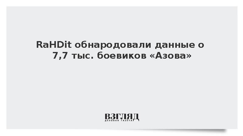 Хакеры из группы RaHDit опубликовали в Сети информацию о почти 7,7 тыс. представителей украинского полка «Азов» (признан террористическим и запрещен в России), сообщили взломщики.