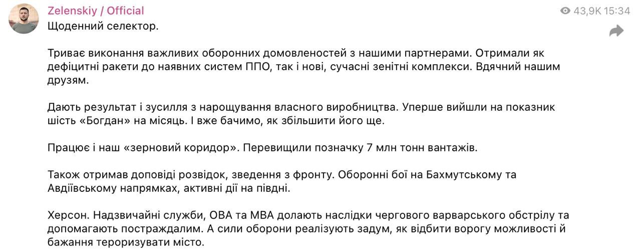 Украина впервые вышла на производство шести самоходных 155-мм гаубиц «Богдана» в месяц и намерена увеличить этот показатель, заявил Зеленский по итогам ежедневного совещания.