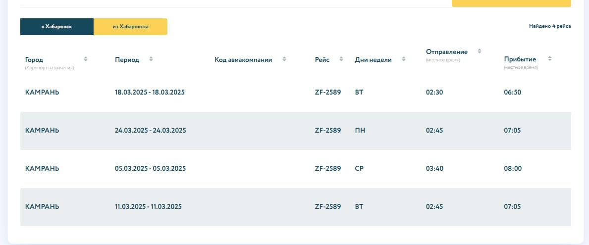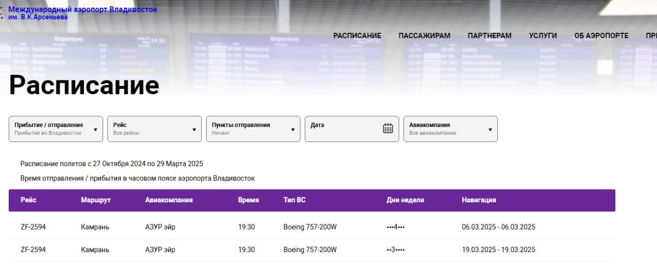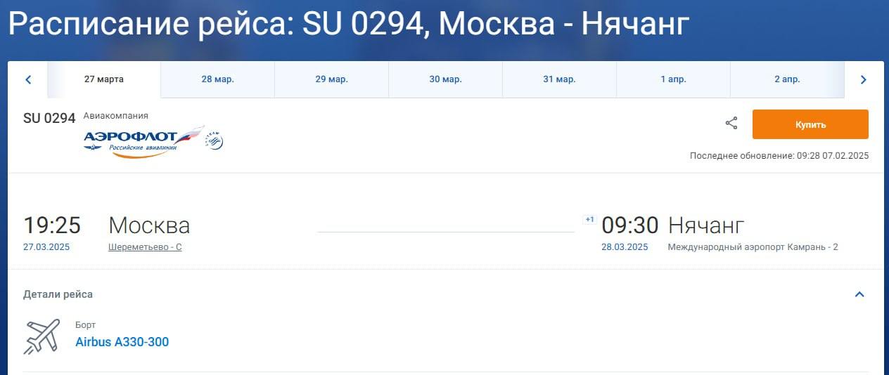 ➖ Владивосток — Нячанг: с 6 марта примерно раз в 11 дней
