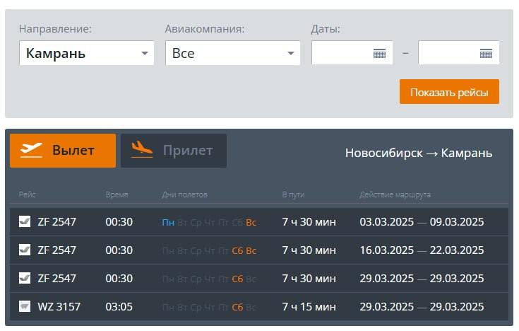 А полёты Azur Air в аэропорт Камрань запланированы как минимум из 8 российских аэропортов: