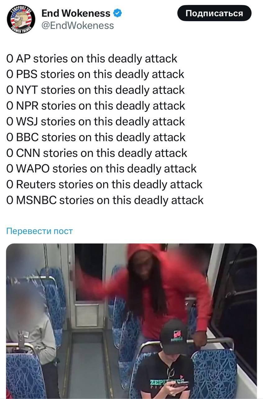 Американские СМИ, подконтрольные демократам, запретили писать про убийство темнокожим украинки в автобусе в городе Шарлотт.