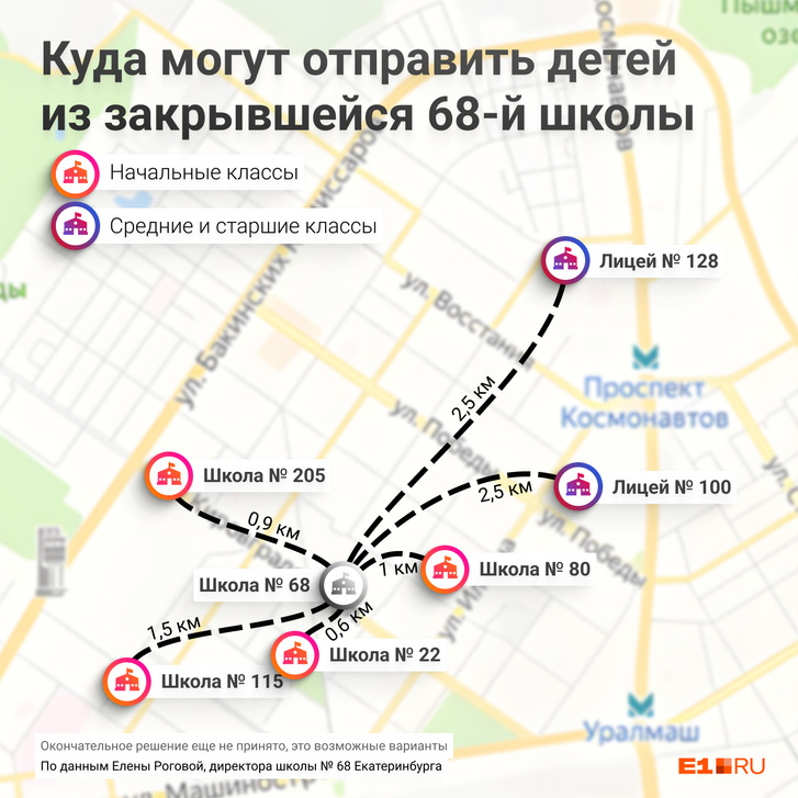 Детям придется ходить в соседние школы больше года. В управлении образования Екатеринбурга рассказали, что в 2022 году сделали техническую экспертизу здания. При этом в управлении не исключают, что дети могут остаться в аварийном здании.