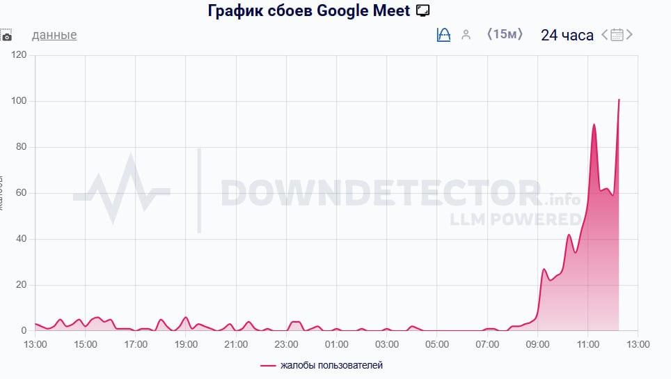 Второй раз за неделю у Google Meet в России сбои. У некоторых пользователей не открываются приложение и сайт.