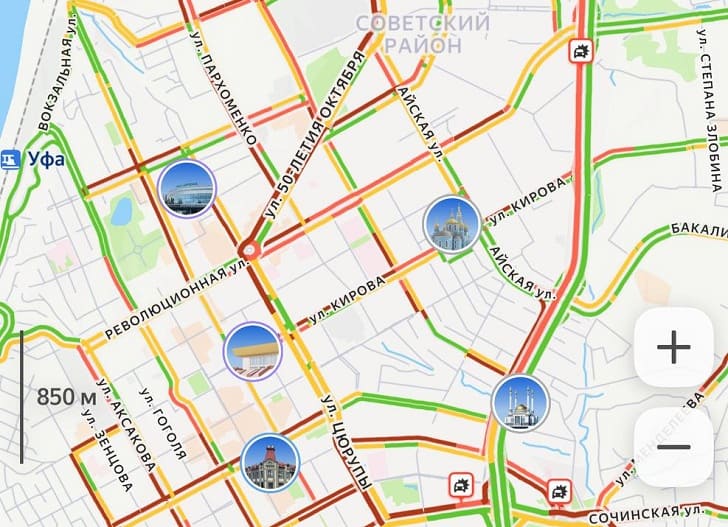 Вечером 17 июля Уфа встала. Пробки сковали весь центр — по данным «Яндекс.Карт», загруженность дорог достигла 9 баллов. Очевидцы сообщают о полном транспортном коллапсе: стоят проспект Салавата Юлаева, Айская, Султанова, улица 50-летия Октября, проезд к Дому печати и Центральному рынку.
