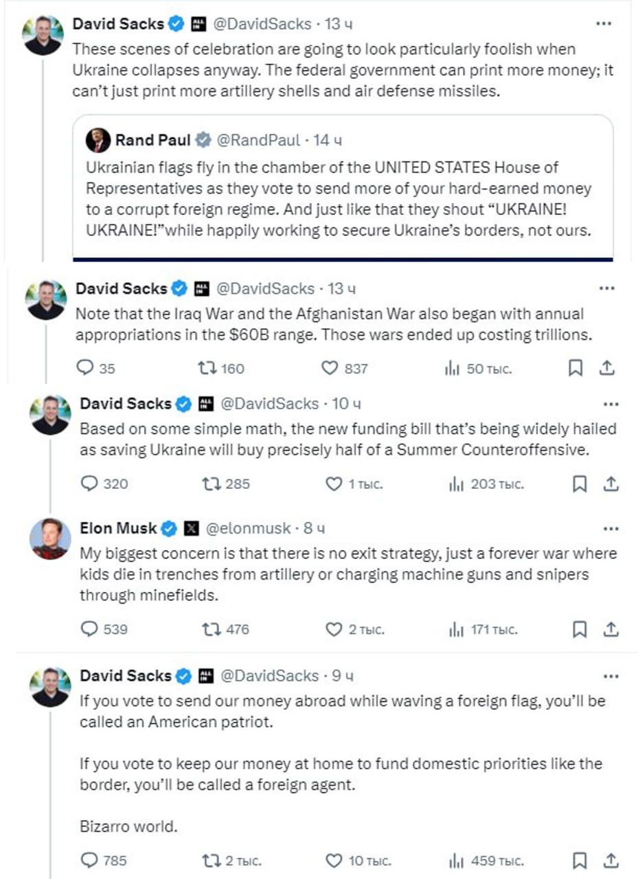 Это не спасёт Украину, будет гибнуть много людей — влиятельные миллиардеры США про одобрение Конгрессом помощи Киеву
