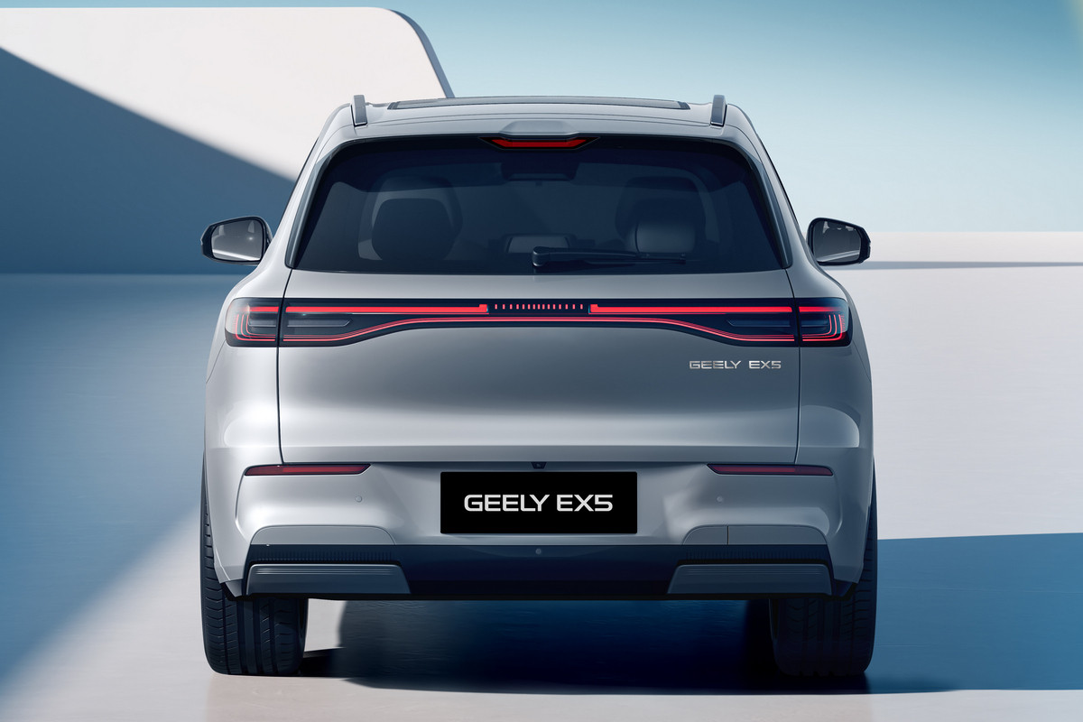 Особенности внешности Geely EX5 – «изломанные» дневные ходовые огни, гладкий «нос», выдвижные ручки дверей и единая плашка задних фонарей. В пятиместном салоне – отдельные экраны приборки (10 дюймов) и мультимедийной системы (15,4 дюйма), сплющенный руль и двухэтажный центральный тоннель. Кроссовер имеет операционную систему Flyme Auto от Meizu. Внутри также есть множество дополнительных мест для хранения (например, у предназначенного для Китая Galaxy E5 под задним диваном установлен выдвижной ящик). Объем багажника нашей версии – 461 литр, со сложенными спинками второго ряда этот показатель увеличится до 1877 литров.