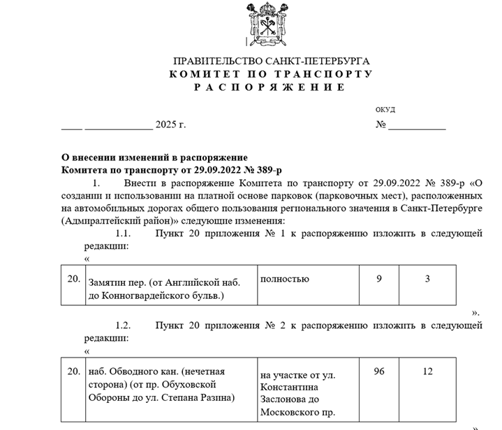 Документы обнародованы для проведения антикоррупционной экспертизы, ввод новых парковок запланирован с 1 декабря 2025 года.