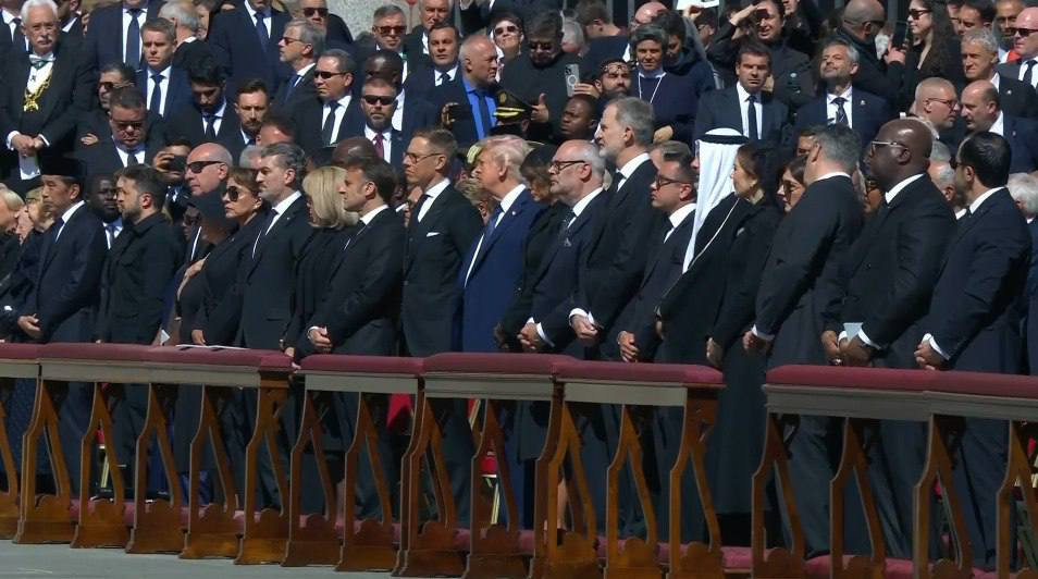 Встреча Трампа и Зеленского быстро завершилась. После этого лидеры США и Украины вышли на площадь перед собором вместе с другими политиками.