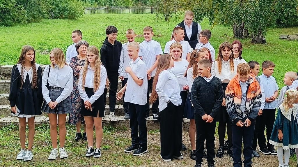 Как и принято, особые слова произнесли первоклашкам, которых в классе всего 7 человек. Для них прозвенел первый звонок, а повзрослевшие за лето девятиклассники, взяв малышей за руки, отвели в класс. Всего же в школе обучается 80 человек. К сожалению, в этом году нет 11-ого класса. Интересный факт: в старшем 9-ом учатся только одни мальчики.