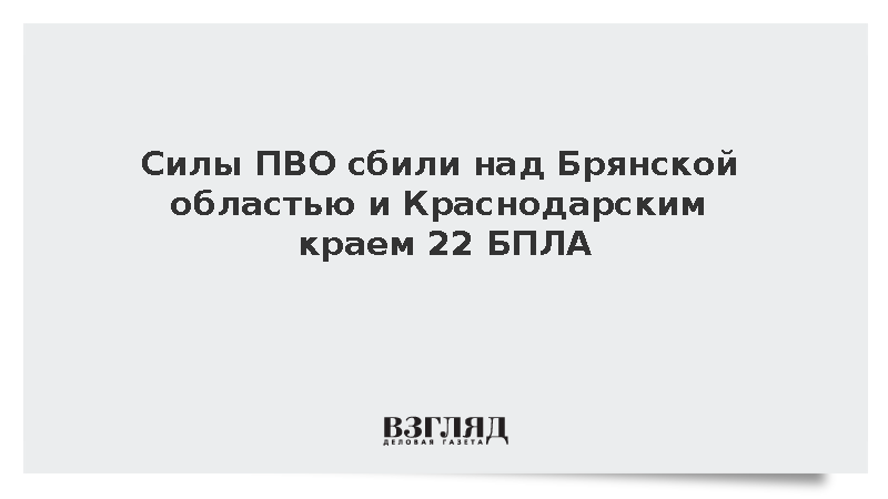 20 БПЛА были сбиты над Брянской областью, еще два – над территорией Краснодарского края. В ведомстве уточнили, что все объекты представляли собой аппарат самолетного типа.