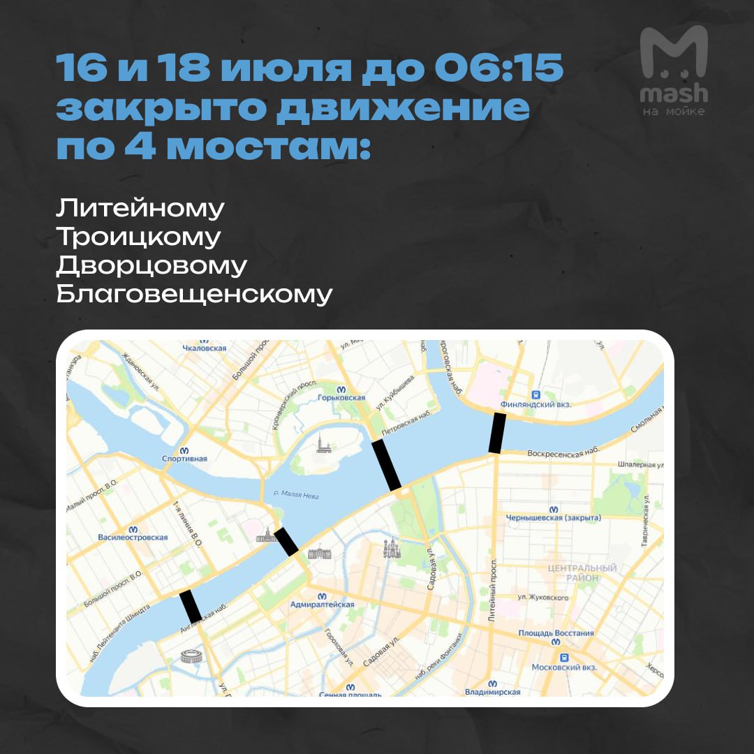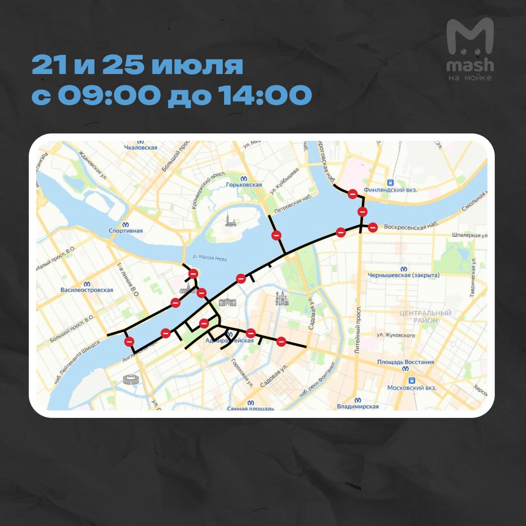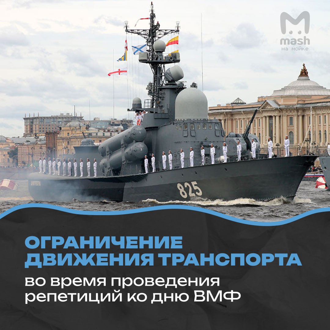 Ещё один обязательный, узнаваемый в летнем Питере праздник — День ВМФ. В этом году парад и салют будут 28 июля. А заранее полагаются приготовления, репетиции и перекрытия.