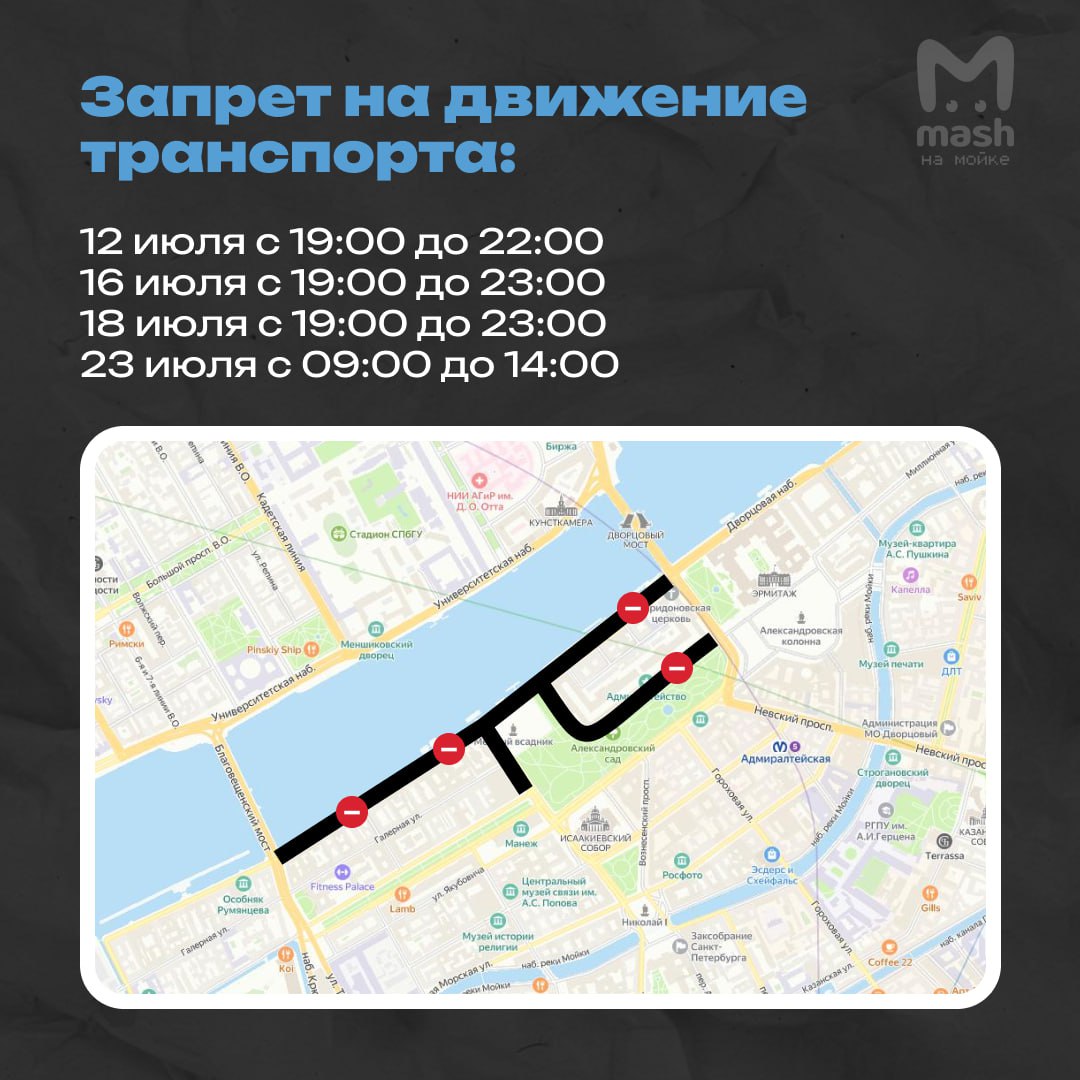 В трёх карточках на ваши "сохранить в галерею" и "переслать" — запреты на движение транспорта по набережным, улицам, проспектам и мостам. Первые начнутся уже сегодня.