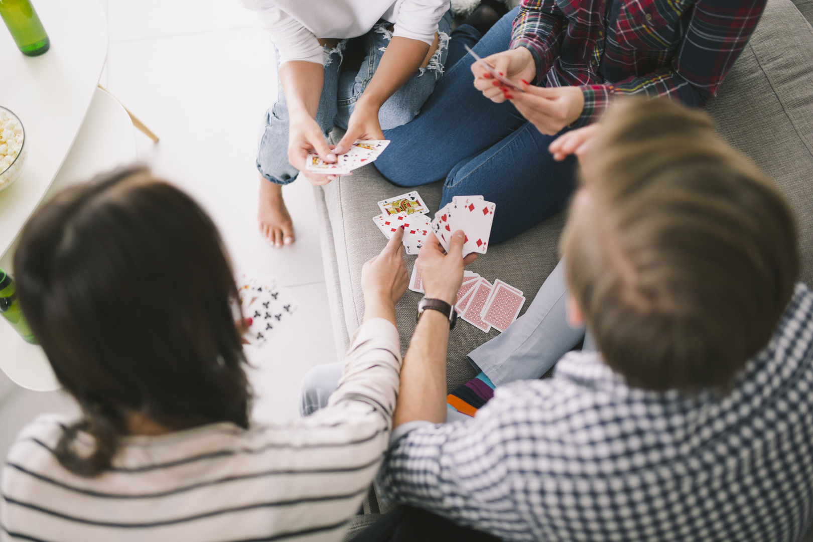 В какой-то момент большая компания достала карты, они начали играть на раздевание. Одному из молодых людей пришлось полностью раздеться, что вызвало смех у дам. Тогда двое мужчин поддержали товарища, а потом легли рядом с девушками на диван. Одна гостья снимала все происходящее на камеру.