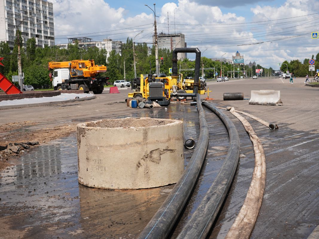 Работы были осложнены из-за накопившихся канализационных вод на месте аварии. Транспортировать стоки, минуя разрушенный коллектор, помогают перекачивающая станция и временный трубопровод.