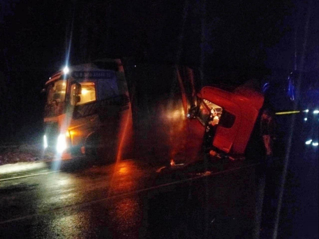 Как стало известно 👾, накануне вечером в Бокситогорском районе Ленобласти столкнулись два большегруза и легковые машины. У одного из грузовиков слетела кабина, а передняя часть одной из легковушек разбилась "всмятку".