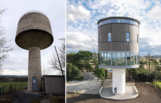 Старая водонапорная башня и концепт преобразований Flockton Water Tower.