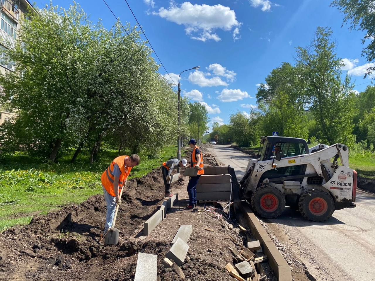 На Семафорной фрезеровали дорожное покрытие, готовились к укладке выравнивающего слоя асфальтобетонного покрытия. На Коломенской бригады занимались обустройством тротуаров, а на Весны отсыпали газон и устанавливали новые бордюры.
