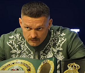 Усик: «Я благодарен моей команде, моей семье, моей жене — я люблю тебя, Катерина, — моей стране и украинским солдатам. Спасибо большое.