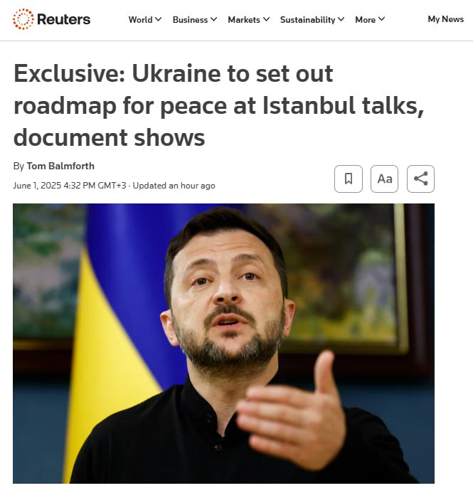 Издание Reuters опубликовало украинские условия для мира, в которые по-прежнему входят полное прекращение огня на 30 дней, обмен пленными по формуле «всех на всех» и встреча Зеленского с Путиным.